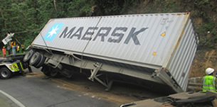 Se instruirá en el des volcamiento de tracto camiones cuando sea posible usando una sola calzada con el fin de no obstaculizar el tráfico y usando vehículos de control para cuidar de accidentes la parte final de un desvolcamiento.